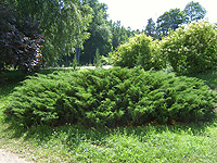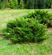 Esta conífera es un arbusto postrado con numerosas ramificaciones muy abiertas.. Nombre científico o latino: Juniperus sabina. Nombre común: Sabina rastrera. Pertenece a la familia de las Cupresaceaes.